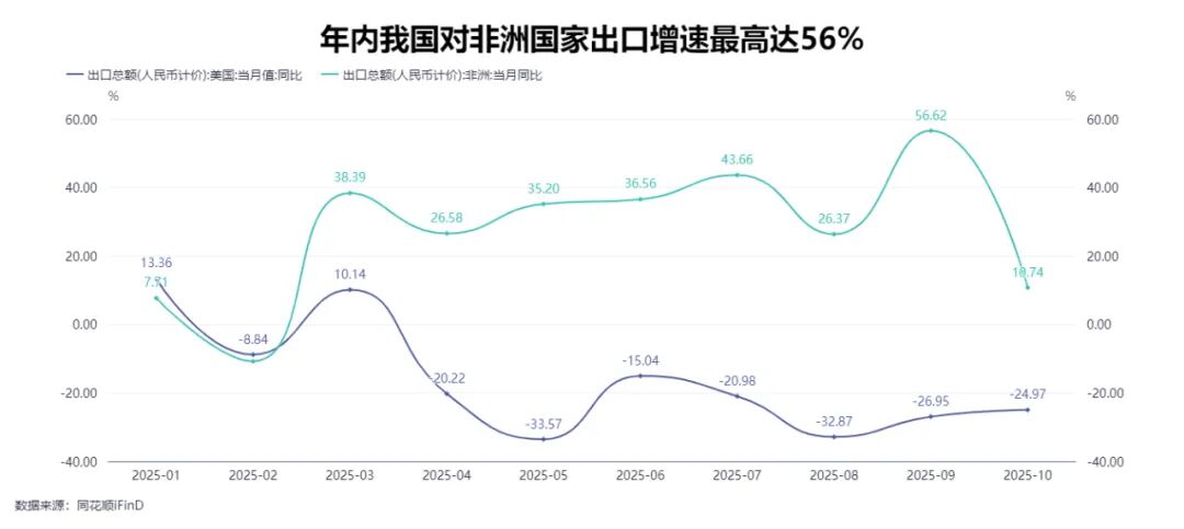 海关总署数据骄贵,本年前10个月,我国对非出口额约1.3万亿元,同比增长27.2%,限制再创同期历史新高。其中,9月份,中国对非出口增速达到56.6%。